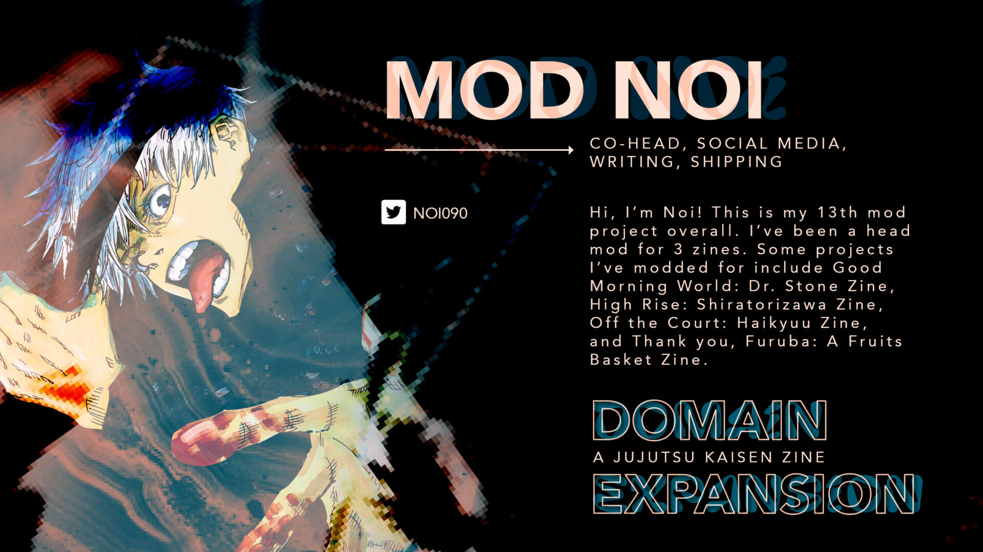 Hi, I’m Noi! This is my 13th mod project overall. I've been a head mod for 3 zines. Some projects I've modded for include Good Morning World: Dr. Stone Zine,