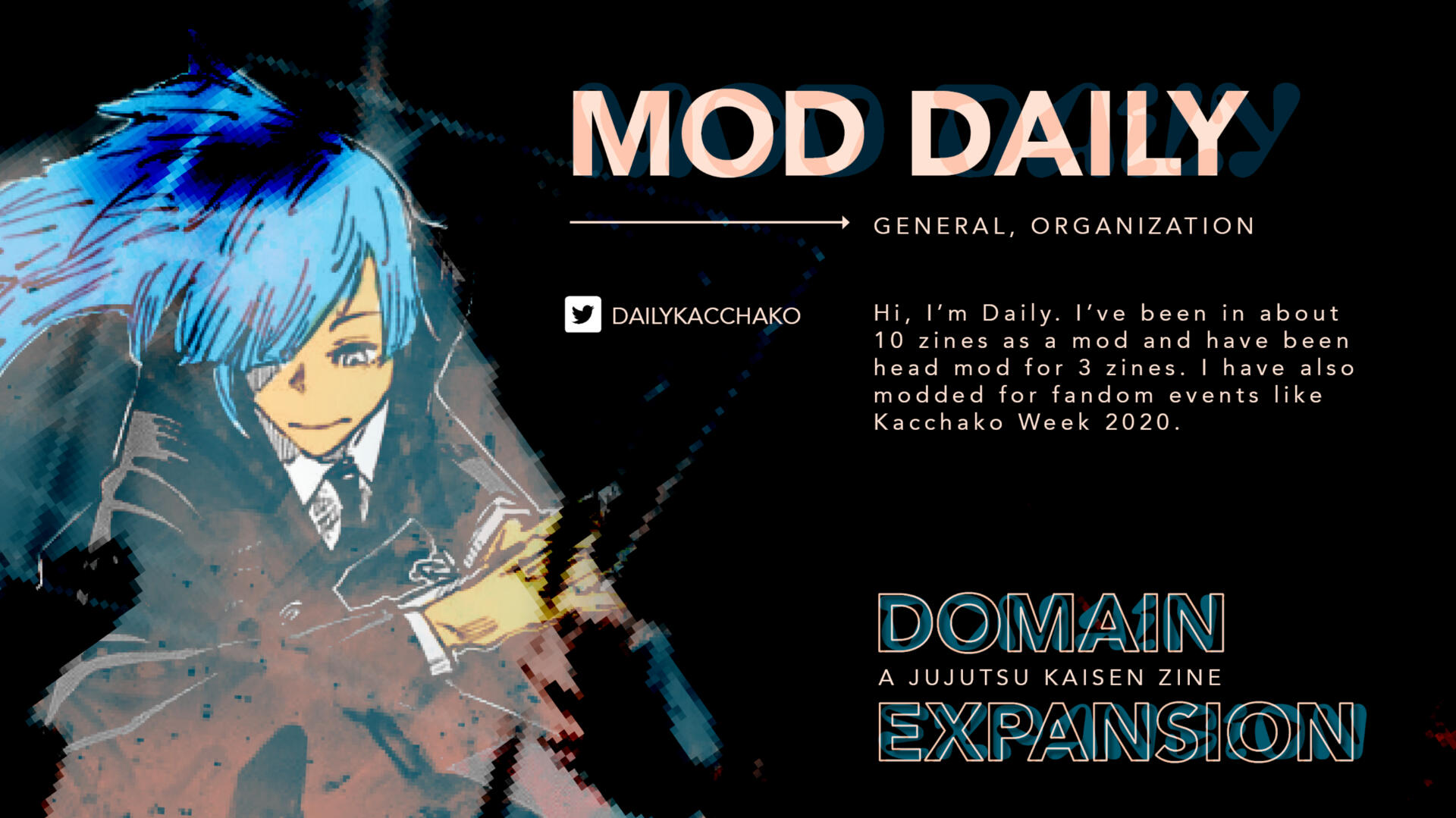 Hi, I’m Daily. I've been in about 10 zines as a mod and have been head mod for 3 zines. I have also modded for fandom events like Kacchako Week 2020.